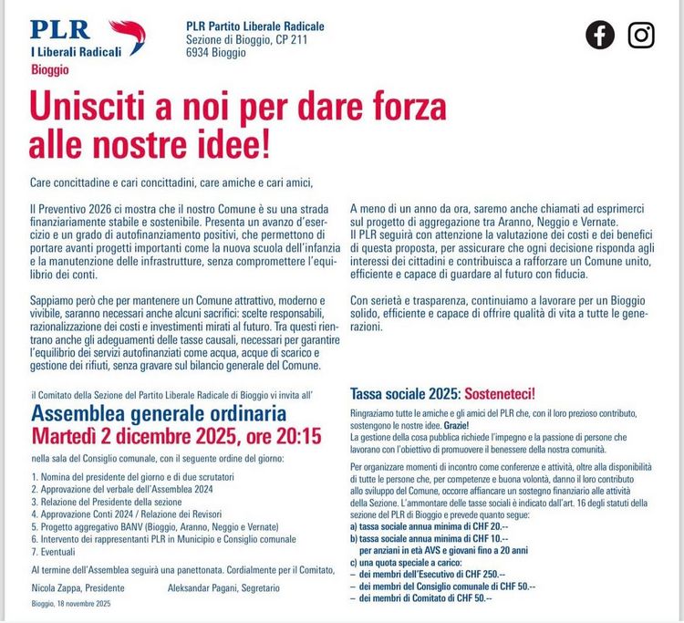 PLR Bioggio - Assemblea ordinaria