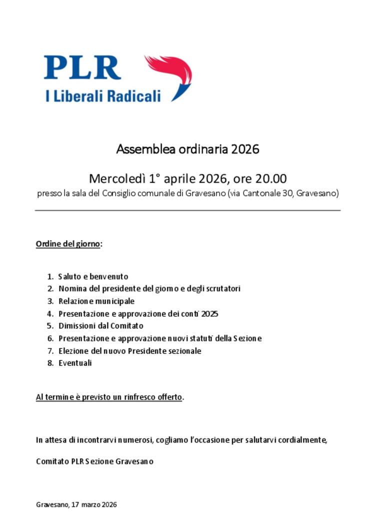 PLR Gravesano - Assemblea ordinaria
