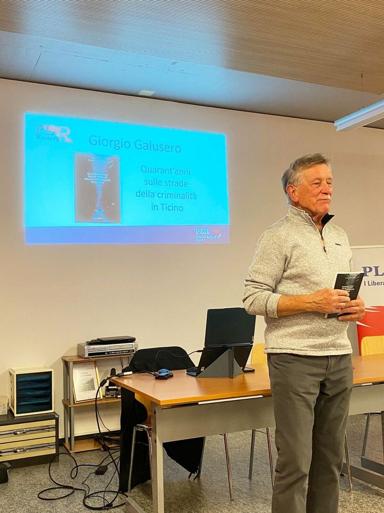 Il secondo ospite Giorgio Gallusero che ha presentato il suo libro « quarant’anni sulla strada della criminalità ticinese », l’autore che vanta lunga esperienza, questa maturata in quarant’anni e più al servizio delle nostre forze dell’ordine, nel suo excursus ha toccato molti casi da lui vissuti in prima persona come agente o in casi più complessi da infiltrato. Sempre impegnato nella lotta contro la criminalità nostrana e pure internazionale, combattere le associazioni mafiose attive nello spaccio di stupefacenti implica ovviamente rischio e sacrificio, aspetti questo impattante con la sfera privata, famiglia, amici, tempo libero ecc. L’opera libraria sfata pure la convinzione che la criminalità odierna si più cruenta del passato, la criminalità è sempre la stessa non è cambiata. Gallusero ha pure rievocato anche tragedie nostrane del passato, nel particolare dove lui fu coinvolto, l’incidente ferroviario di un bus scolastico a Sant’Antonino dove perirono molti bambini, racconto che ovviamente ha suscitato molta commozione in sala. I proventi del suo libro andranno a favore dell’istituto Von Mentlen.